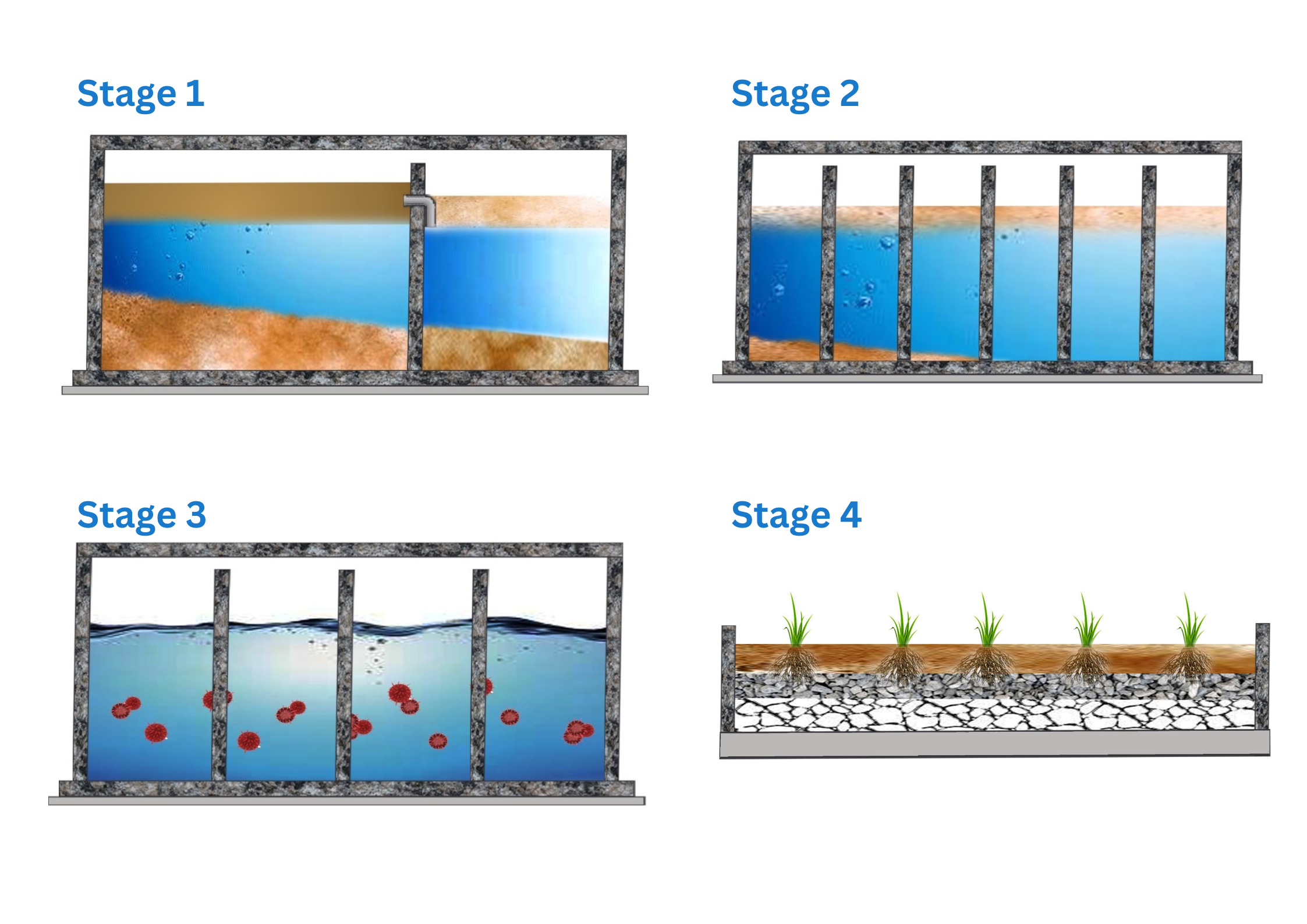 Our reed bed systems are designed to mimic natural wetland processes, ensuring optimal treatment of wastewater through several stages: