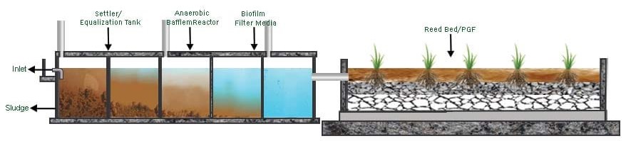 A Jal Science Bio-Reed Reed Bed Technology for wastewater treatment typically uses natural processes involving plants and microbes to treat and purify water. This system mimics natural wetlands, utilizing the root zones of plants and microbial activity to break down contaminants. Here's an overview of how it works: